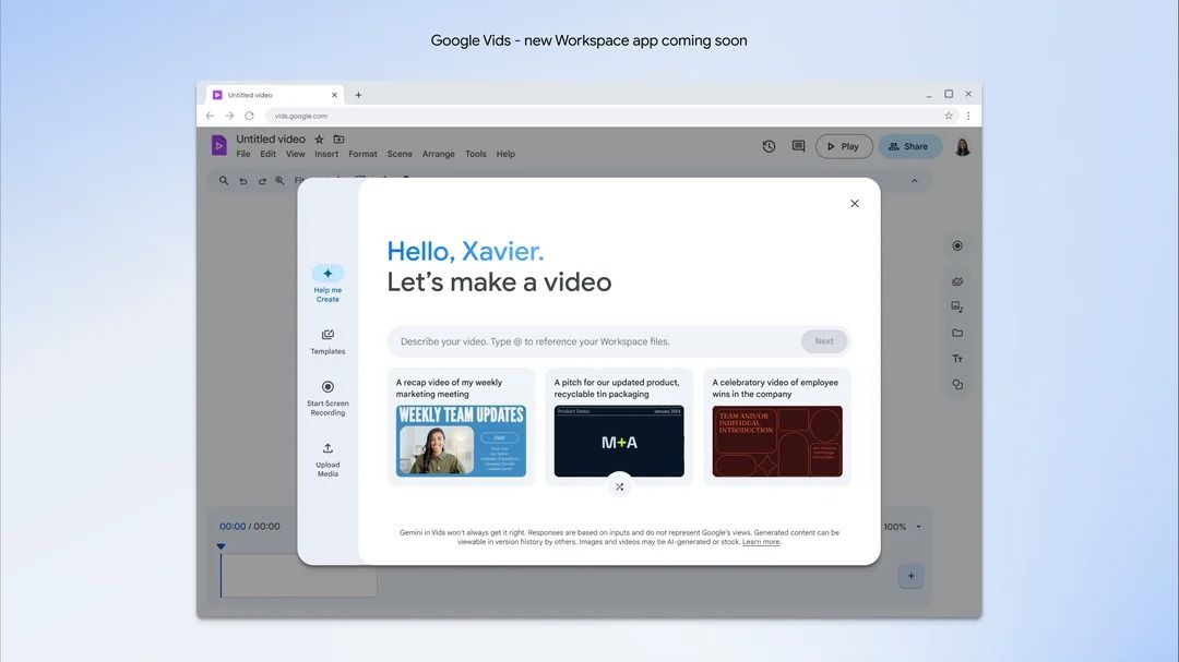 Google Vids: Yapay zekâ ile güçlendirilmiş sunumlar