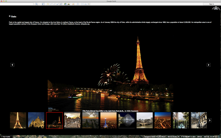 Tur rehberi kullanıcılara ilginç yerleri tepeden üç boyutlu bir biçimde görme imkanı sunuyor ve bu esnada Wikipedia’dan sağlanan bilgileri de kullanıcılara aktarıyor. Bu hizmet için Panoramio ile çalışan Google kullanıcılar tarafından sağlanen bir milyonu aşkın fotoğrafı Earth’e entegre etti. Tur rehberi özelliğinden faydalanmak için ekstra bir indirme işlemi yapmayaysa gerek yok. Google Earth 7.0’nin masaüstü ve mobil versiyonlarına sahip olanlar hemen turlarına başlayabilirler.