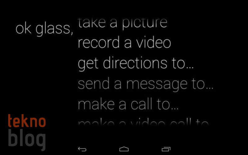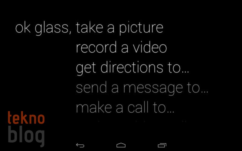 Fotoğraf çekmek için “Ok Glass, take a picture”, yani “Tamam Glass, fotoğraf çek” diye seslenmeniz yeterli. Aynı şekilde “Ok Glass” diyerek başlayacağınız çeşitli komutlar da bulunuyor. Google’da arama yapma, mesaj gönderme ve bunun gibi işler için Google Glass’a sesli komutlar vermeniz, Glass’ın harekete geçmesi için yeterli oluyor.