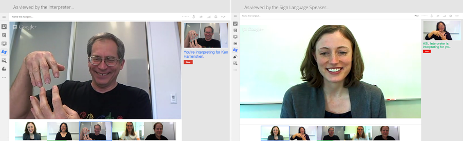 Video konferans servisini engelli kullanıcılar için daha kullanışlı bir hale getirmeye çalışan Google, Google+ Hangouts’a getirdiği iki yeni özelliği duyurdu. Şirketin İşaret Dili Tercüme uygulaması duymakta zorluk yaşayan veya tamamen duyma engelli olan kullanıcılar Hangout esnasında kendi tercümanlarına sahip olacaklar. Hangout penceresinin sağ üst köşesinde yer alan tercümanın görüntüsü konuşmaya başladığı zaman ekranın odak noktasına alınacak. Duyma engelli kullanıcıların işaretleri de yine tercüman tarafından sese dönüştürülecek.