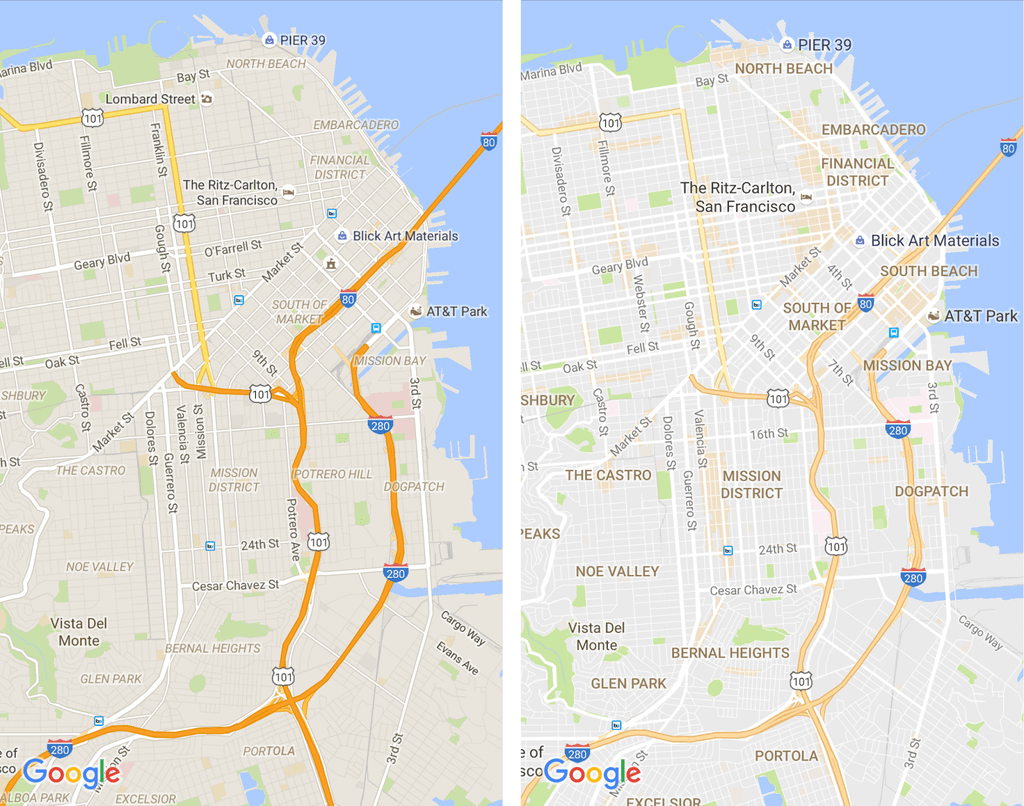 Google Haritalar servisinin Android, iOS ve web versiyonları için hazırlanan son güncelleme, ortaya daha anlaşılır bir görüntü çıkarmayı ve harita okumayı kolaylaştırmayı amaçlıyor. Güncellenen Google Haritalar ile yolların ana hatlarını gösteren çizgiler arayüzden çıkarılırken, uygulamanın tipografisi de değiştiriliyor. Google böylelikle kullanıcıların trafik bilgisini görmeyi kolaylaştırmayı ve önemli noktaları daha görünür kılmayı amaçlıyor.