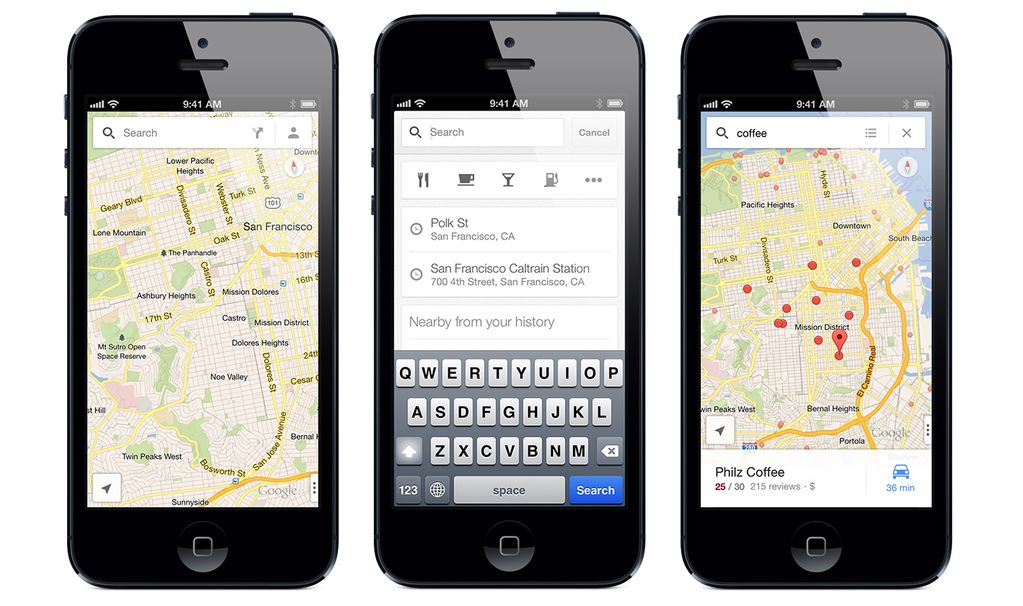 Bir başka güncellemeyse yerel bilgilerin daha fazla entegre edilmiş olması oldu. Arama çubuğuna dokunduktan sonra bar, market, sinema, kahve dükkanı ve bunun gibi 13 farklı kategoriden bir tanesini seçmek ve böylelikle daha özelleşmiş bir şekilde arama yapmak mümkün hâle geldi. Belirlediğiniz kriterlere uygun tüm konumlar harita üzerinde gösteriliyor. Sonuçları harita üzerinde göstermenin yanı sıra içinde Zagat puanları, varış süresi, Google incelemeleri gibi unsurları barındıran, ayrıca ekranın altından yukarı çekerek belirli bir konum hakkında daha detaylı bilgi almayı sağlayan özel bir liste içinde görüntüleme imkanı da sunuluyor.