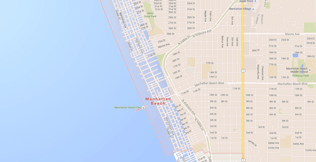 Haritaya bakıldığında Santa Monica, Malibu ve Manhattan Beach bölgelerinin deniz seviyesinin altında kalma ihtimali göze çarpıyor.