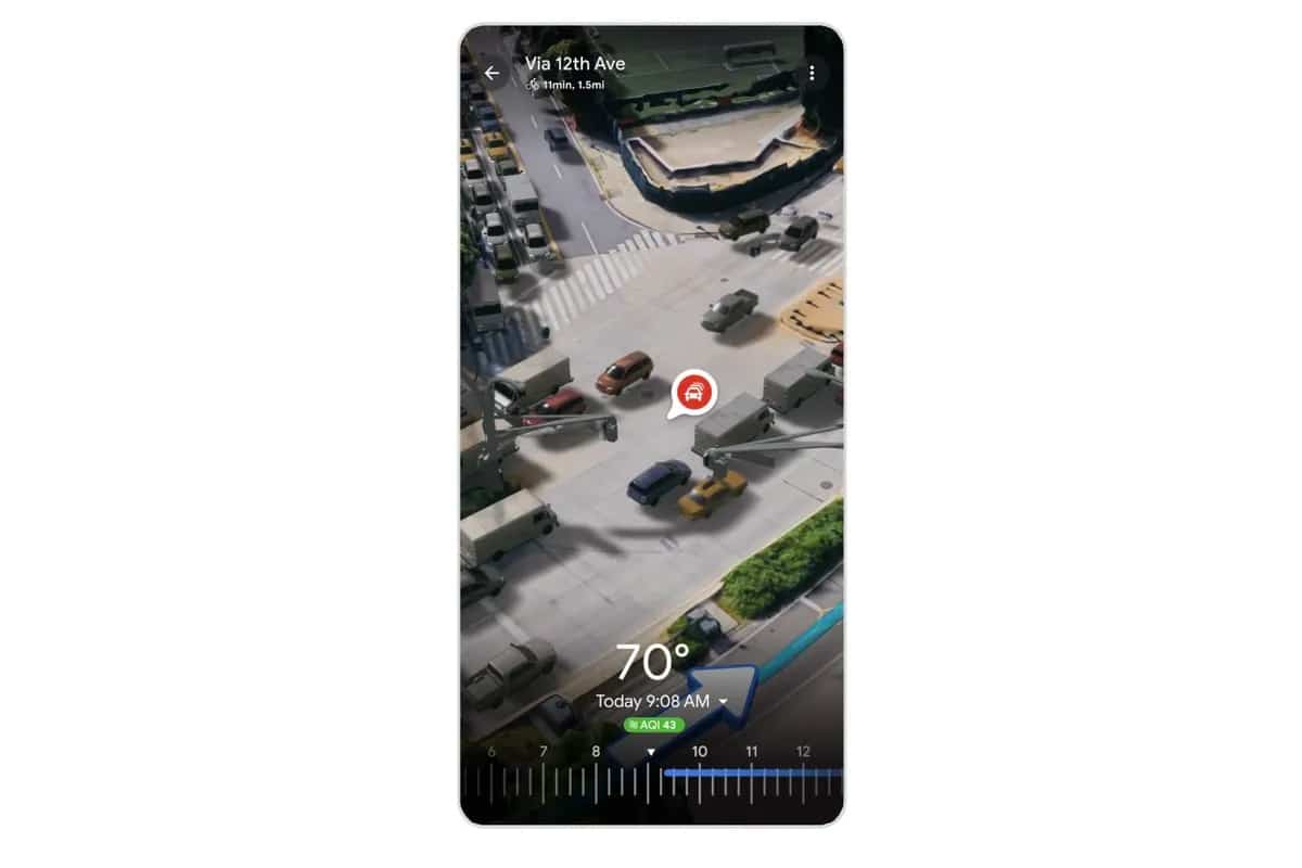 Sürükleyici Görünüm şu anda bir yerin 3D görünümünü sunuyor ve hava durumu veya trafik gibi bilgiler ekleyerek o yerde ne olduğuna dair daha iyi bir fikir edinmenizi sağlıyor. (Apple’ın Flyover görünümüne benziyor, ancak daha fazla detay var.) Sürükleyici Görünüm’nü rota planlamasına dahil ederek, yeni bir yere giderken görebileceğiniz önemli yapıları ve binaları daha iyi görselleştirmenize yardımcı olacak kuş bakışı bir görünüm elde edebilirsiniz. Google, yol durumunu daha iyi anlamanız için hatta trafik simülasyonlarını göstermenize bile izin verecek.