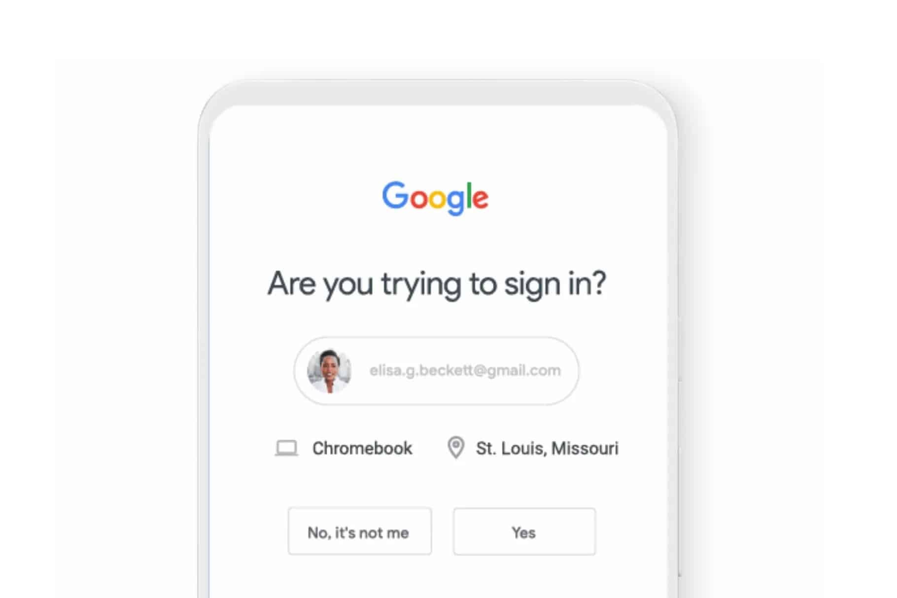 İki faktörlü kimlik doğrulama etkinleştirildikten sonra, kullanıcılar akıllı telefonlarında Google hesaplarıyla oturum açma girişiminin meşru olduğunu doğrulamaları için bir talep ekranı görürler. Google’ın ürün yönetimi kıdemli müdürü Mark Risher, “Oturum açmak için mobil cihazlarını kullanmak, insanlara yalnızca şifrelerden daha güvenli ve daha güvenli bir kimlik doğrulama deneyimi sağlıyor,” dedi. Telefondaki uyarıların, ele geçirilebilen SMS mesajlarından daha güvenli olduğuna inanılıyor.