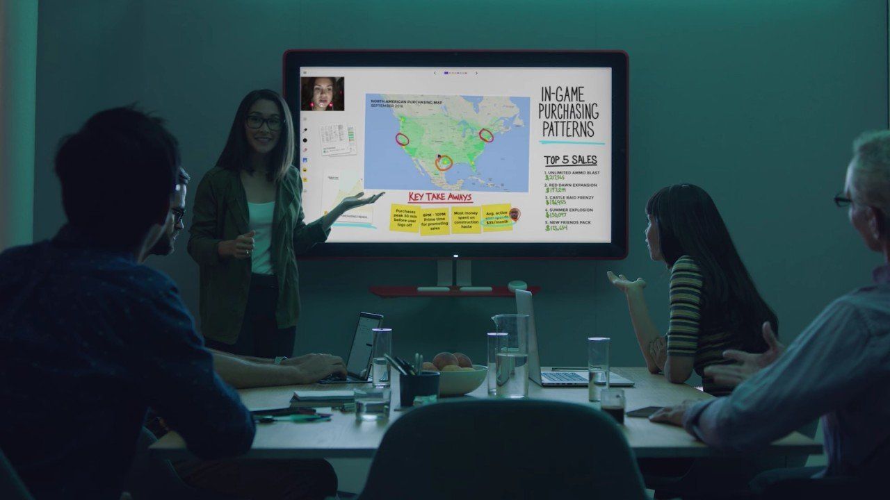 55 inç, 4K çözünürlüklü dijital beyaz tahta Android ile çalışıyor. Beyaz tahta uygulaması sayesinde ekip üyeleri fikirlerini kolaylıkla tahtaya dökebiliyor, projelere katılımda bulunabiliyor. Ekran aynı anda 16 farklı dokunmatik girişi destekliyor. Bunun yanı sıra kapasitif ekran kalemi ve silgi de mevcut. Bunların hiçbirisi pil veya eşleştirme gibi unsurları gerektirmiyor.