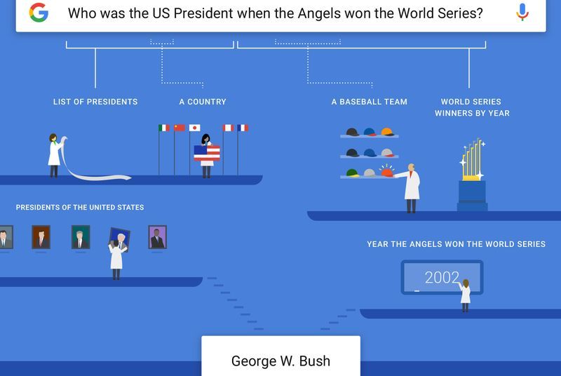 Her şey bununla bitmiyor. Salgar’a göre, Google içinde tarih geçen soruları anlama konusunda da daha iyi işl çıkarıyor. “Güney Dakota’nın 1988’de nüfusu kaçtı?” gibi sorulara da cevap bulabiliyor. Son olarak Google uygulaması birden fazla parçaya bölünmesi gereken karmaşık kombinasyonları çözme konusunda da daha yetenekli hâle geliyor. Buna örnek olarak da “Angels takımı Dünya Serisini kazandığında ABD başkanı kimdi?” şeklinde bir soruyu veriyor.