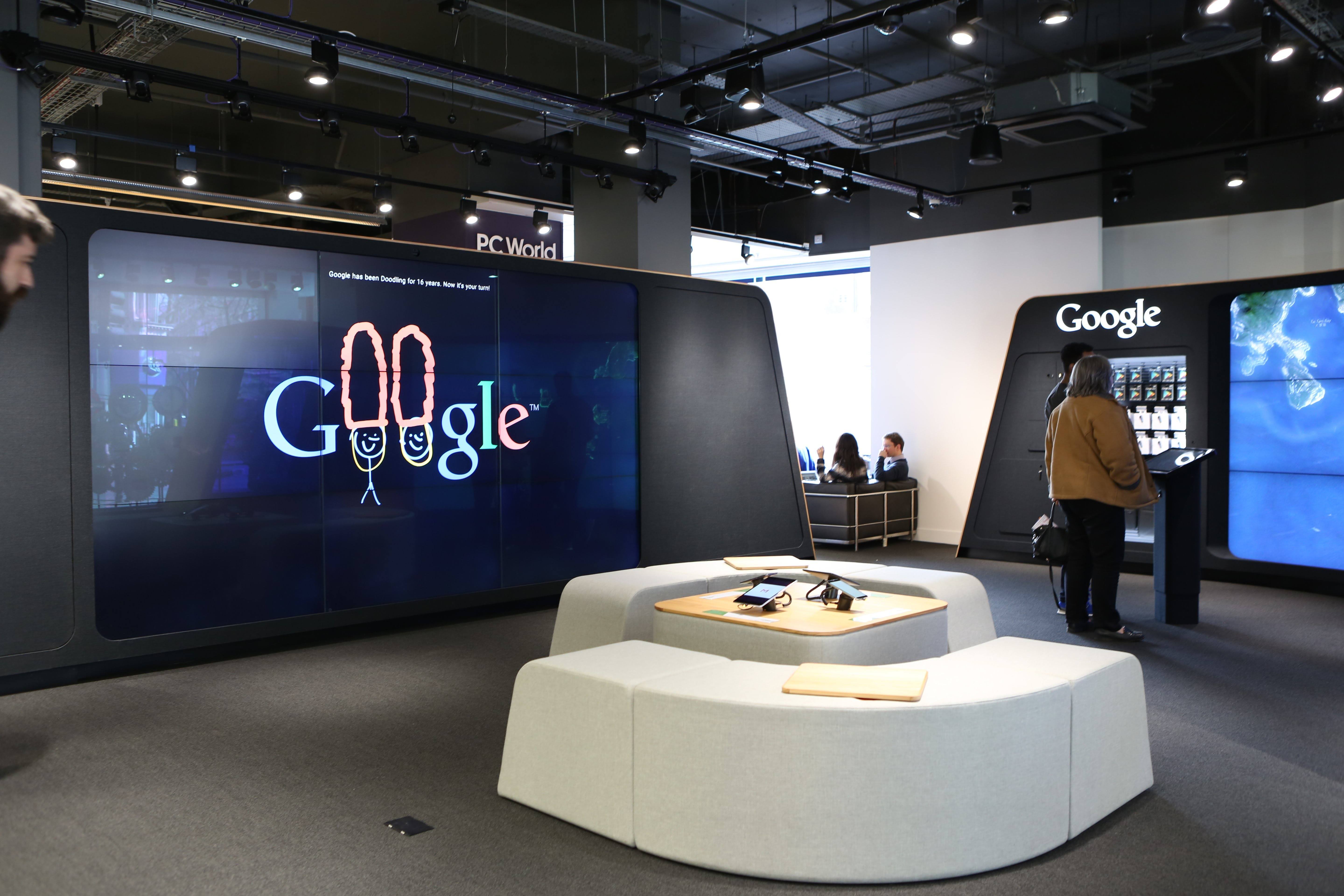 Google’ın perakende mağazasının Apple Store’lardan farkı ise başka bir mağazanın içine yerleştirilmiş olmaları. Google mağazası, elektronik perakende zinciri Currys PC World’ün içinde yer alıyor.
