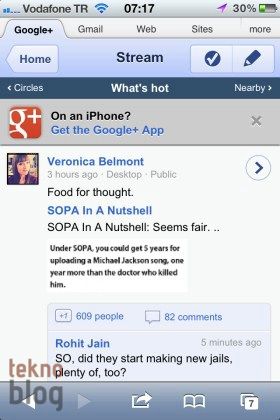 Google+’nın mobil web tarafındaki bu yeniliklerini hemen şimdi iOS veya Android tabanlı cihazınızdan mobil web tarayıcısı üzerinde Google+’ya erişerek görebilirsiniz. Aynı yeniliklerin çok yakında Android ve iOS uygulamalarına da gelmesi bekleniyor.