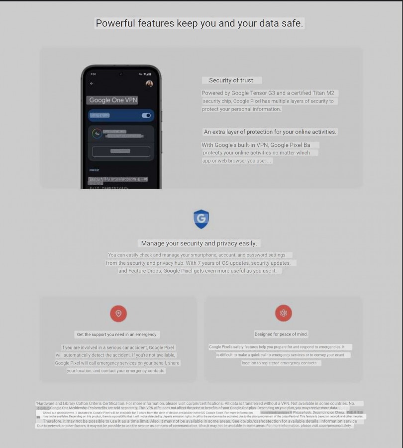 Yapay zeka özellikleri Pixel 8a’ya özgü olmasalar da, pazarlama materyallerinde oldukça detaylı bir şekilde anlatılıyor. Tensor G3 işlemcinin varlığı bir kez daha doğrulanırken, bu işlemciye Titan M2 güvenlik çipinin eşlik edeceği de hatırlatılıyor. Suya ve toza karşı IP67 dayanıklılık sertifikasıyla gelen telefonda ekranı Gorilla Glass 3 cam koruyor.