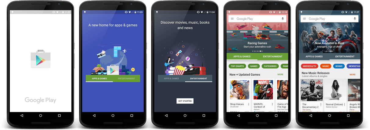 Yaklaşık altı yıldır Google Play Store ekibinde çalışan yazılım mühendisi Kirill Grouchnikov, kişisel Google+ hesabı aracılığıyla yeni Google Play Store tasarımına ait ekran görüntülerini paylaştı. Yenilenen tasarımın doğruluğu ve dağıtım zamanı konusunda henüz somut bir bilgi bulunmuyor. Grouchnikov tarafından yayınlanan ekran görüntülerinde Google Play Store’un kökten bir tasarım değişikliği yaşamayacağı; ancak yenilenen animasyonlar ve sayfa planıyla daha taze bir görünüme kavuşacağı görülüyor.