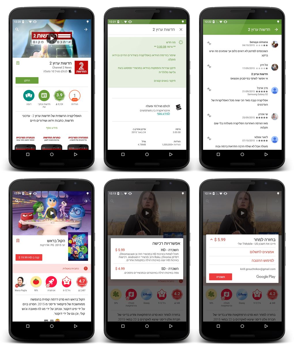 Grouchnikov tarafından paylaşılan görüntülerde İbranice yazıların da bulunması, Google Play Store’un sağdan sola doğru yazılan dilleri de desteklenmeye başlayacağını gösteriyor.