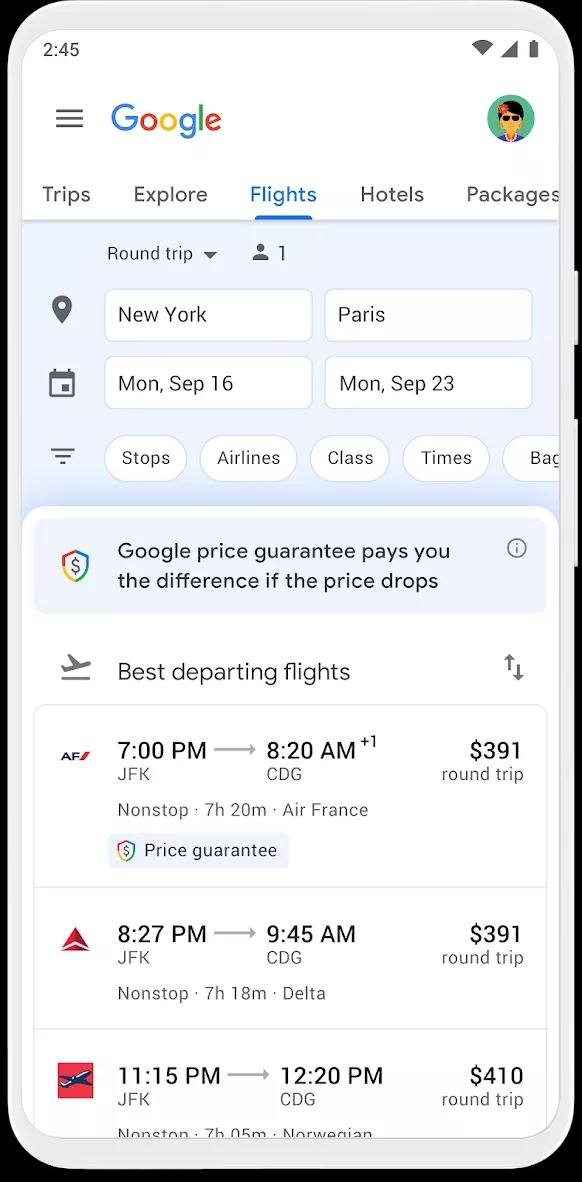 Google Flights’a gelen bir güncelleme sayesinde, ülkelerine ve yılın zamanına göre popüler varış noktalarına ait seyahat rehberleri gösteriliyor. Aynı zamanda tam seyahat tarihlerini ve varış noktalarını belirterek uçuş fiyatlarına ait geçmiş verilerini de alabilir ve rezervasyon için en iyi zamanı bulabilirsiniz.