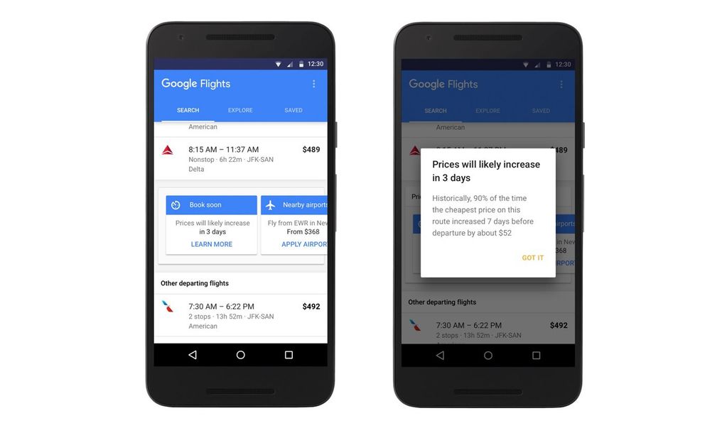Bu mesajda kullanıcılara biletlerini hemen almaları durumunda ne kadar tasarruf edecekleri de söylenecek. Bileti alma konusunda biraz daha beklemek isteyenler uçuşu veya rotayı takibe alabilecek. Google bu kullanıcılara ücret artışlarıyla ilgili bildirimler gönderecek.
