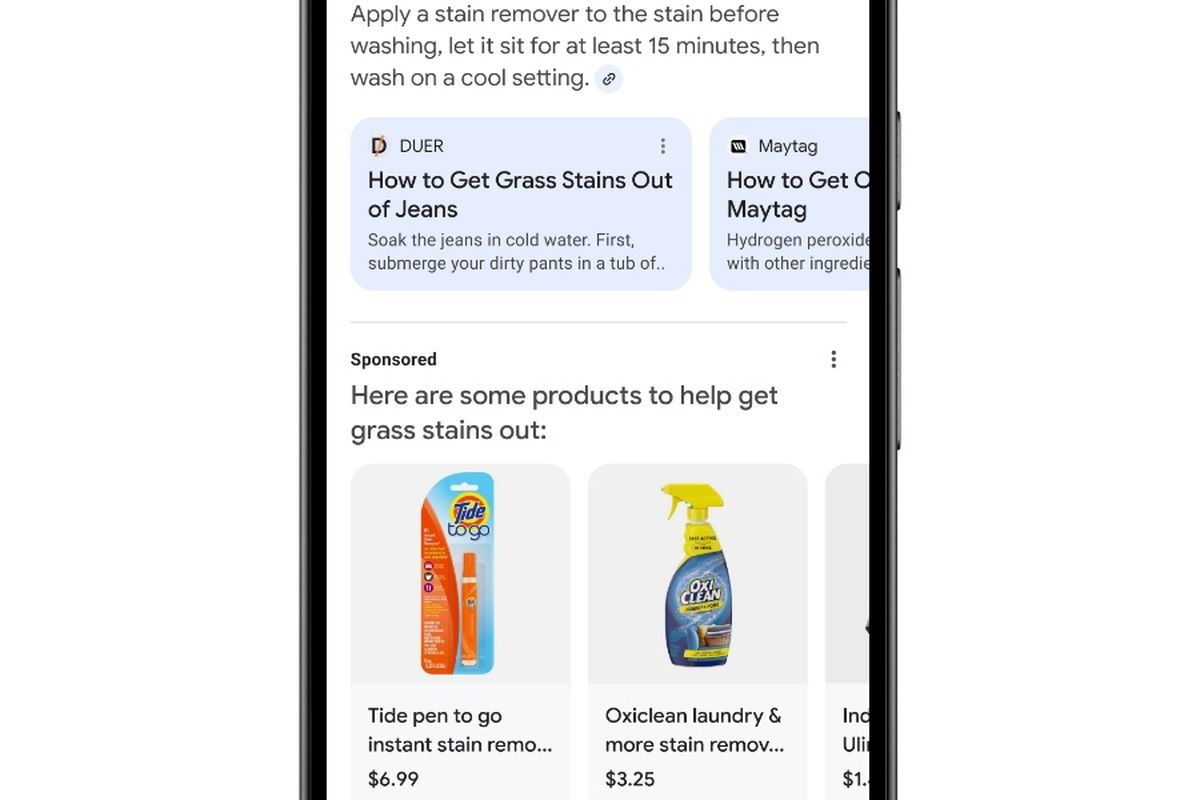 Örneğin, pantolonunuzdaki çimen lekesini nasıl çıkaracağınızı arattığınızı düşünün. Google’a sorduğunuzda, yapay zeka tarafından oluşturulan yanıt bazı öneriler sunacak ve lekeyi çıkarmanıza yardımcı olabilecek ürün önerilerini de gösterecek. Bu ürünler, “sponsorlu” başlığı altında yer alacak ve Google sözcüsü Craig Ewer’in The Verge’e verdiği bilgiye göre, yalnızca sorunun “ticari bir yönü” varsa gösterilecek.