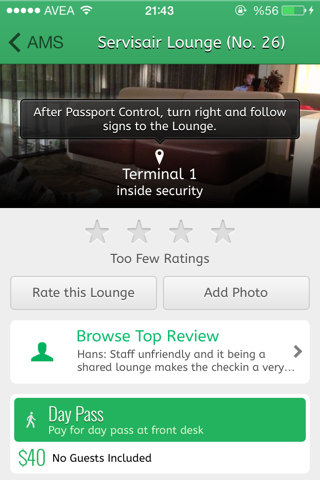 iOS 7’nin tasarım diline uygun olarak hazırlanan Loungebuddy’de kullanıcılar uçuşlarının kalkış ve varış noktalarını yazarak söz konusu havaalanlarındaki lounge listesini hemen görebiliyor. Bu lounge’lardan sadece özel bir zümreye açık olanları uygulama tarafından baştan belirtilirken, ücret karşılığında girilebilecek olanların ücreti de arama sonuçlarının yanında yazıyor. Listede yer alan lounge’lardan biri seçildiği zaman ise kullanıcıların karşısına o lounge’a ait fotoğraflar, diğer kullanıcıların yaptığı yorumları ve lounge’ta sunulan hizmetlerin listesini görebiliyor. Lounge’un erişilebilirlik durumuna dair detaylara da yine bu ekran üzerinden ulaşılabiliyor.