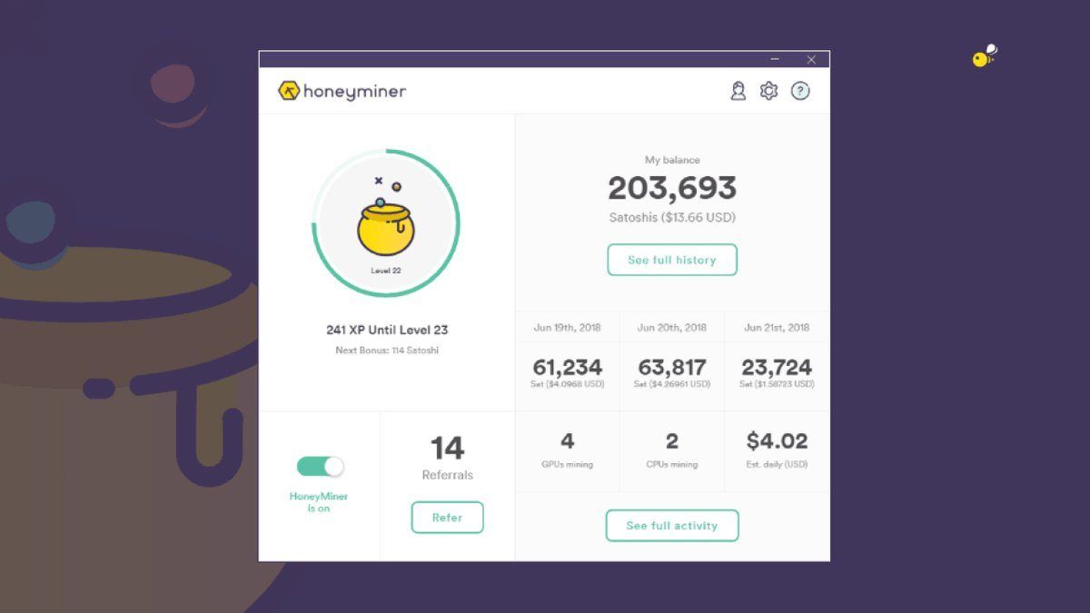 Honeyminer, bireysel tüketicilerin kendi dizüstü bilgisayarlarıyla kripto para madenciliğine katılmasını teşvik eden bir uygulama niteliğini taşıyor. Böylelikle süreç sırasında biraz Bitcoin kazanmanız da mümkün olabilir.