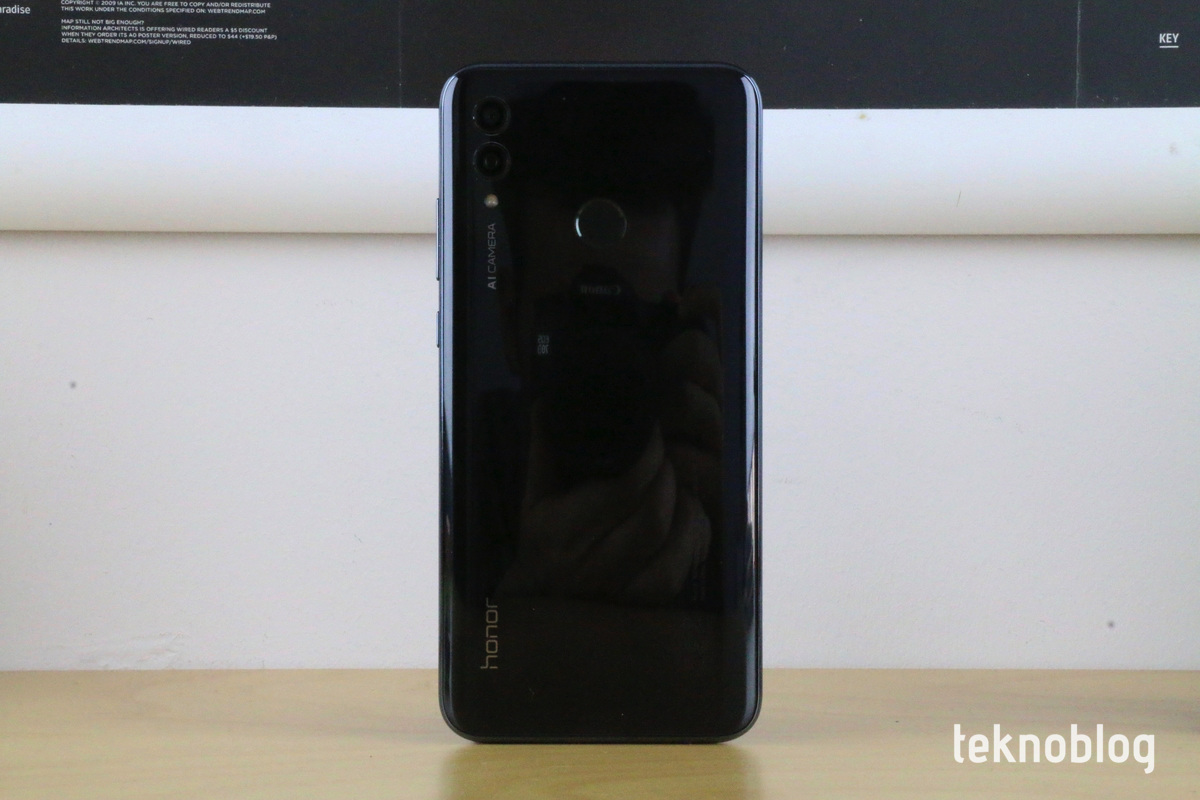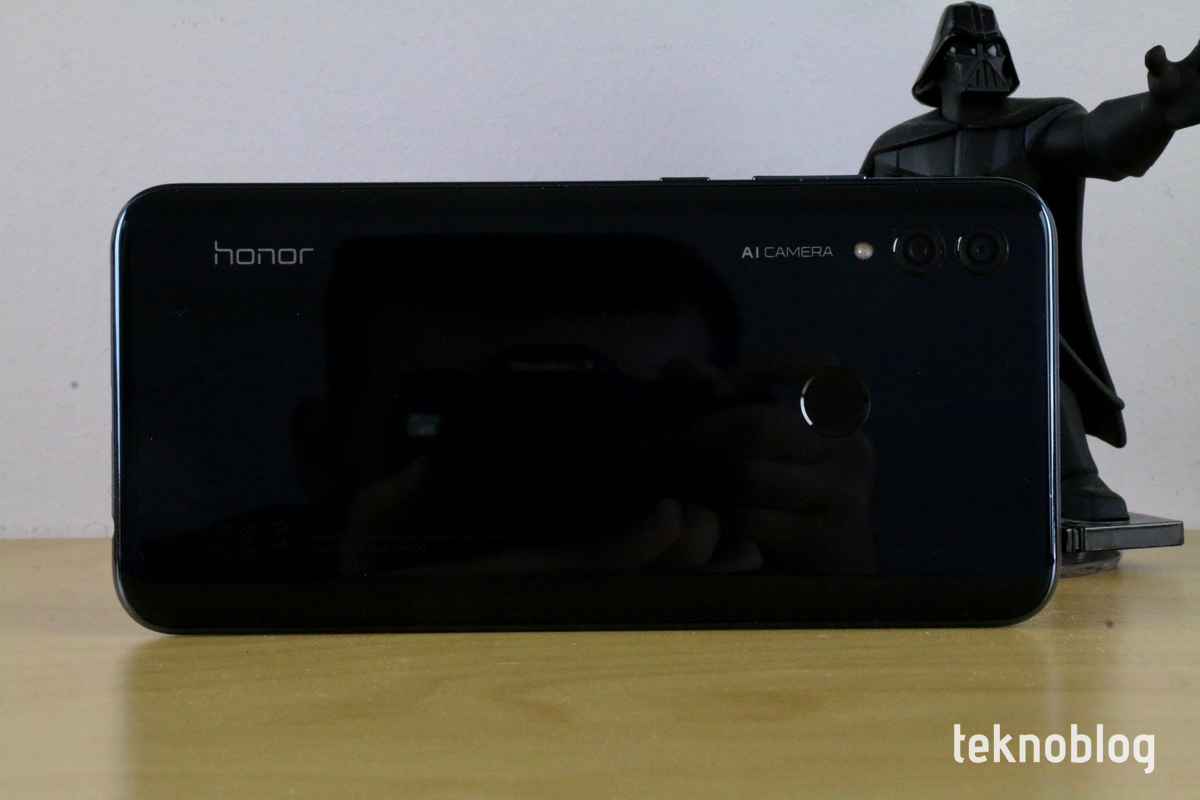 Arkada Huawei’nin kamera telefonlarında gördüğümüz tarzda bir tasarım tercih edilmiş. 13 ve 5 megapiksel çözünürlüklü iki kamera sol üst köşede yer alıyor. Bunların yanında LED flaş var. Ayrıca yatay eksende yazılmış AI CAMERA yazısı da bu kamera sisteminin yapay zekâ destekli yeteneklerini işaret ediyor. Yatayda bu kamera doğrultusunda ilerlediğinizde, alt kenara doğru Honor logosunu göreceksiniz. Bu şekilde telefonun görünümü bir fotoğraf makinesini andırıyor. Ancak insanların akıllı telefonlarıyla fotoğrafları çoğunlukla dik biçimde çektiği bir ortamda, bu yatay görünümlü yerleşim etkisini yitirmişe benziyor