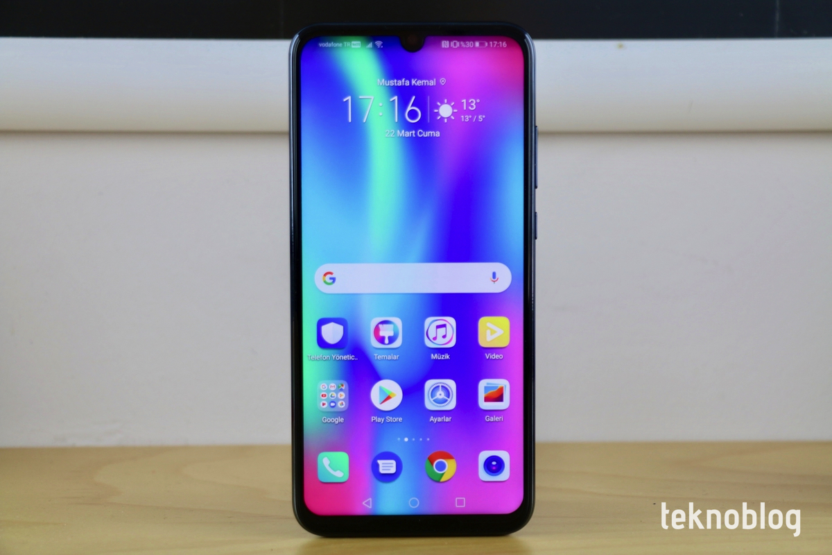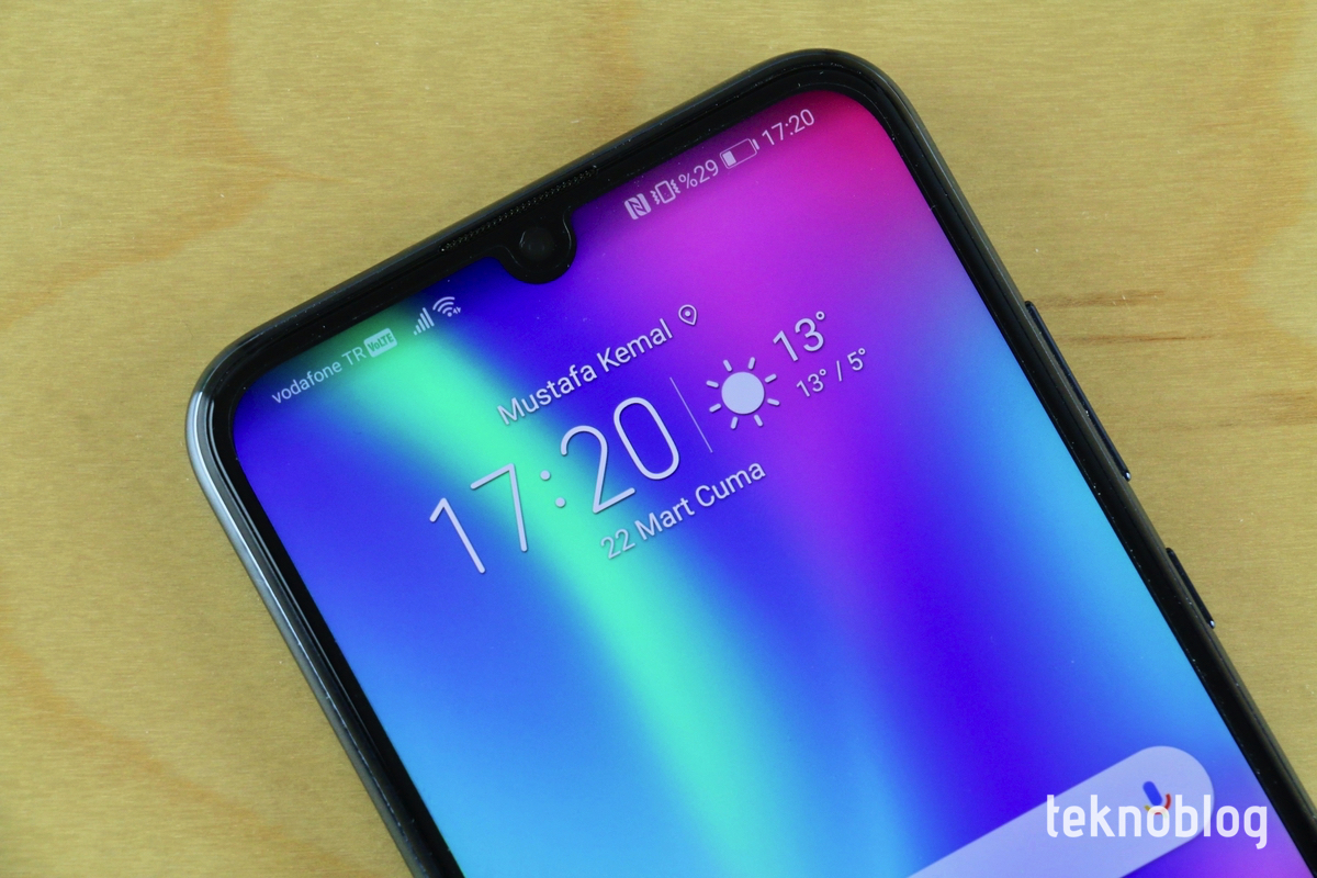Honor 10 Lite’ın 6.21 inçlik ekranı gövdenin yüzde 83’lük bölümüne yayılıyor. Ekranı saran çerçevenin çok kalın olmadığının söyleyebiliriz. Yine de alt tarafta diğerlerine göre kalın bir kenar var. Çentik ise damla biçiminde. Bu da ekran alanını daha da artıyor. Çentiğin rahatsız ediciliği yok, ancak eğer isterseniz, çentiğin etrafında kalan alanı tamamen karartıp biraz daha klasik bir ekran görünümü elde edebilirsiniz.
