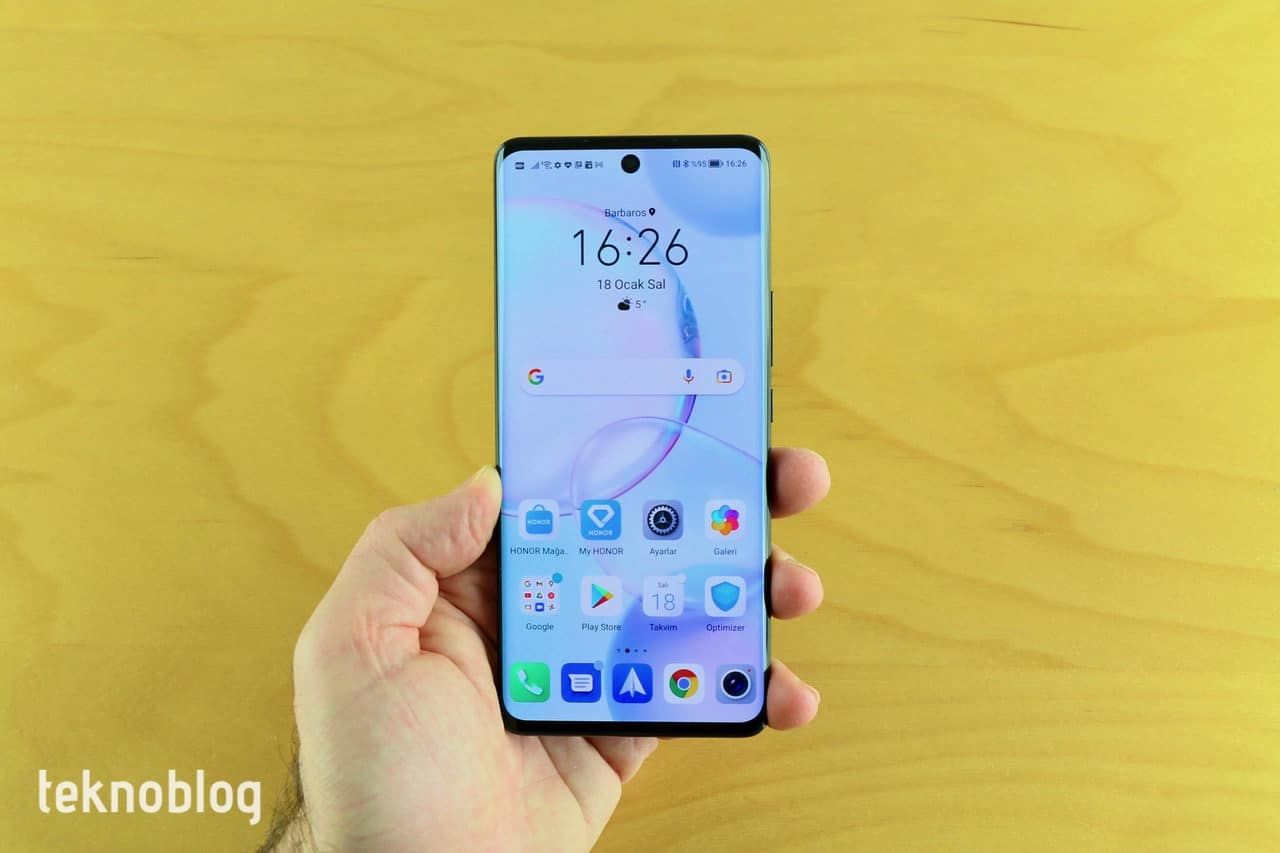 Honor 50’de 6.57 inç OLED ekran bulunuyor. 2340 x 1080 piksel Full HD+ çözünürlüklü ekran 392 ppi ile yeterli bir piksel yoğunluğu değerini sunuyor. Yazılar, grafikler, resimler için makul bir keskinlik var. Ekran 1 milyar renk desteğine sahip ve renkler oldukça canlı ve çekici görünüyor. Maksimum ekran parlaklığında oyunlar ve videolar fazlasıyla canlı ve seyir zevki yüksek biçimde görünüyor. Ekran ayarları içinde renk modunu ve sıcaklığını seçem ayarı da bulunuyor. 19.5:9 görüntü oranlı ekran videoların kenarlarında siyah çubukların görüntülenmesine neden olabilir, ancak dikey kullanım için yeteri kadar fazla satır sayısı sağlıyor. Özellikle web sitelerinde gezinti için bu ekran fazlasıyla kullanışlı.