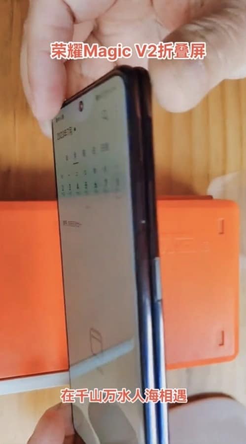 İnce bir çerçevenin sardığı kapak ekranının orta üst kısmında telefonun ön kamerası bulunuyor. Ekranın sadece sağ kenara doğru kavis yapması da dikkat çekiyor. Magic V2’nin en ince katlanabilir telefonlardan biri olacağı iddiası da bu sızıntı sayesinde görülüyor. Daha önce konuşulanlara göre, katlanabilir telefon tartıda 240 gramdan hafif çekiyor.