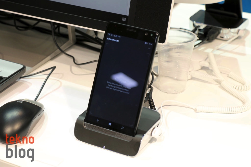 HP Elite X3’te 5.96 inç ekran var, ancak bunu 6 inç olarak da kabul etmek mümkün. Bu ekran 2560 x 1440 piksel çözünürlük desteği sunuyor. Standın parlak ışığı altında ekrandakilerin rahatlıkla seçilebildiğini söyleyebiliriz. Bu hâliyle bile HP Elite X3 çalışanlara işlerini rahatlıkla yapmalarını sağlayacak alanı sunuyor. Bununla birlikte Continuum adı verilen Windows 10 Mobile özelliğinden de tam anlamıyla yararlanıyor ve çalışanlara telefonlarını harici ekranlara bağlama, bununla birlikte klavye ve fareyi de eksik etmeyerek PC’dekine benzer bir deneyim yaşama fırsatı veriyor. HP’nin sunmuş olduğu Elite X3 yerleştirme istasyonunun arkasına baktığınızda port bakımından bir hayli zengin olduğunu gördük. Ethernet, USB, USB-C, HDMI gibi geniş yelpazede bir port desteği mevcut.