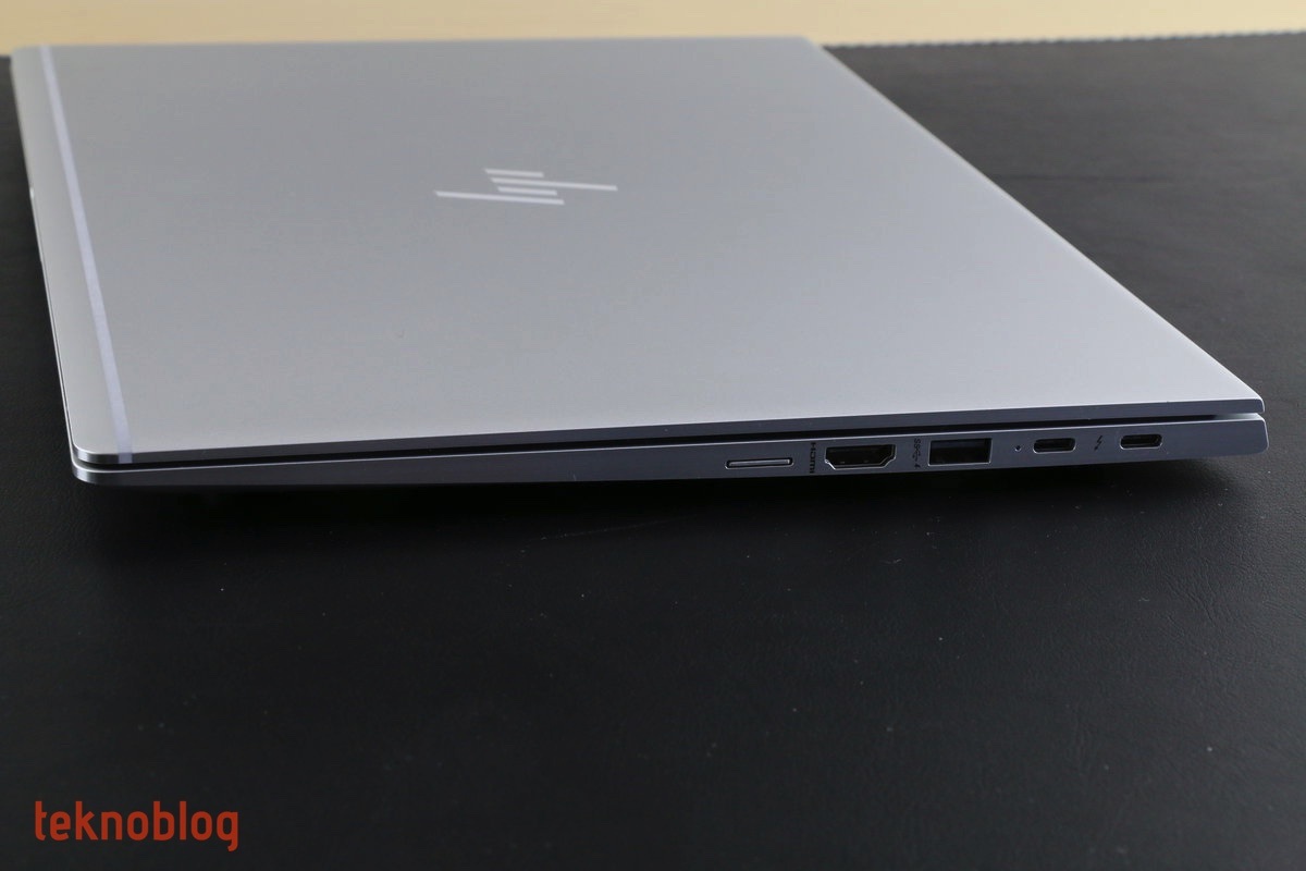 Sol kenara baktığımızda, dikkat çeken ilk unsur havalandırma ızgarası oluyor. Onun hemen bitişiğinde kilit yuvasını görüyoruz. USB 3.1 portu ve 3.5 mm. kulaklık jakı da aynı tarafta yer alıyor. Sağ kenarda ise HDMI portu bulunuyor. Bu sayede bilgisayarı sunum için harici bir monitör veya projeksiyon cihazına bağlamak kolaylaşacaktır. Ayrıca ikinci bir USB 3.1 portu ve iki adet USB-C portunu görüyoruz. USB-C portlarından bir tanesi Thunderbolt 3 desteğine de sahip. Böylelikle destekleyen harici diskleri bağlayıp daha hızlı dosya iletim hızlarına ulaşabilirsiniz. Öte yandan dizüstü bilgisayarın şarjı da USB-C portlarından bir tanesiyle gerçekleştiriliyor. Kutudan çıkan şarj cihazının da USB-C ucu bulunuyor.