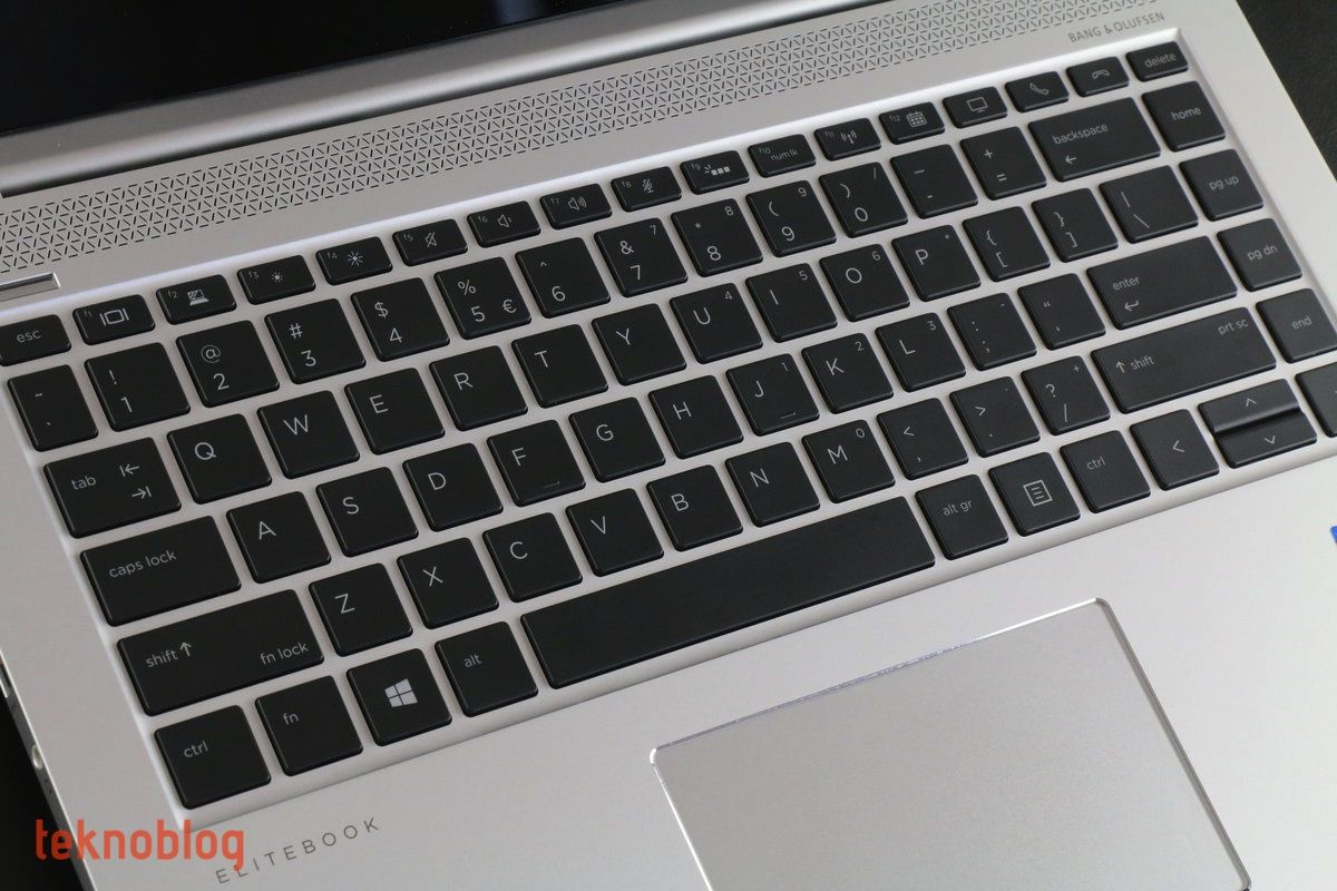 HP EliteBook 1040 G4’ün klavyesi ve izleme dörtgeninin rahat ve kusursuz bir kullanım sunduğunu söyleyebiliriz. Ada tipi klavye, geniş tuş mesafeleri, yeterli derinlik ve sertlik sayesinde yazı yazmayı epey rahat hâle getiriyor. Test ettiğimiz üründe İngilizce klavye düzeni mevcuttu. Bu durum yazı yazmamızı az da olsa zorladı, ancak klavyenin kullanımı konusunda herhangi bir sıkıntı yaşamadık. Klavyenin üst satırında çeşitli fonksiyon tuşları bulunuyor. Ancak HP sadece alıştığımız ekran parlaklığı, ses, klavye aydınlatması gibi tuşlarla sınırlı kalmıyor, Skype görüşmelerini başlatma ve sonlandırma, mikrofonun sesini kısma gibi işlevler için de tuşlar ekliyor.