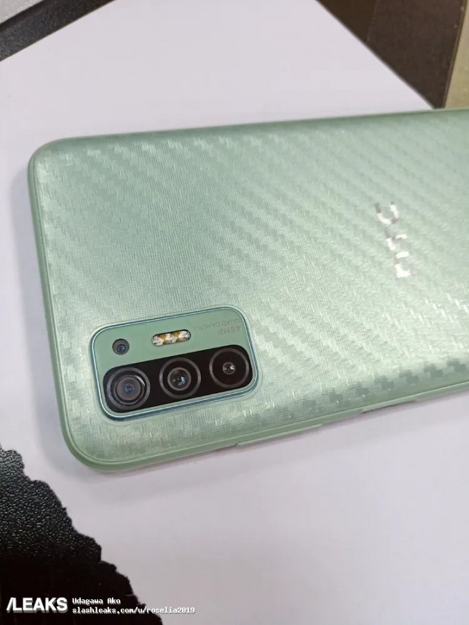 Arka tarafa geçildiğinde ise nane yeşili panelin karbon fiber bir dokuya sahip olduğu görülüyor. Dörtlü kamera sisteminde ise ana kamera görevini 48 megapiksel kamera üstleniyor. Parmak izi tarayıcısının görülmemesi ise HTC’nin sensörü güç butonuna entegre ettiğini düşündürüyor.