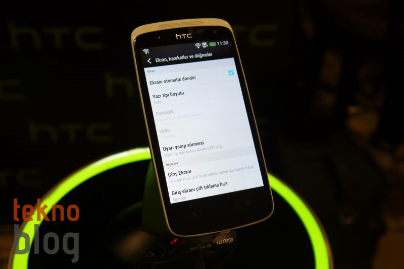 Desire 500’ün 4.3 inç ekranı 480 x 800 piksel çözünürlüğe sahip. Bu çözünürlük bazılarına düşük gelebilir, ancak bu büyüklükte bir ekran için yeterli oluyor. Telefonda bulunan Sense 5 kullanıcı arayüzünü daha önce HTC One gibi Full HD çözünürlüklü bir ekranda görmüştük, bu nedenle gözümüz keskin grafiklere ve yazılara alışmıştı. Ancak Desire 500’ün ekranında da Sense 5’in kullanıcı arayüzü unsurları çok fena görünmüyor. TFT kapasitif dokunmatik ekranın parlaklığını düşük bulmadık, ayrıca görüş açıları da düşük sayılmaz.