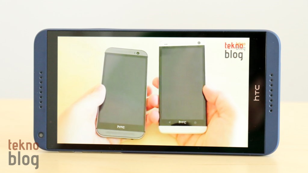 HTC Desire 816 ile büyük ekran sevenlere üst sınıf Android telefonlara göre biraz daha uygun fiyattan böyle bir imkana kavuşma fırsatı sunuluyor. 5.5 inç Super LCD2 ekran 1280 x 720 piksel çözünürlük desteği sunuyor. 267 ppi piksel yoğunluk değeri günümüzün amiral gemisi Android telefonlarında gördüğümüz 400 ppi üstü değerlere göre düşük görünse de, Desire 816’nın ekranı keskinlik ve kontrast açısından yabana atılır cinsten değil. Ekran parlaklığı çok yüksek olmasa da, parlak güneş ışığı altında işinizi rahatlıkla görmenizi sağlayacak yeterlikte bir parlaklığı size sunuyor. Siyah renklerin derin olmaması ve ekranın kenarlarından hafif de olsa ışık saçılması olması dikkatimizi çeken diğer unsurlar. Yine de, HTC Desire 816’nın ekranı ortalamanın üstünde görünüyor; Sense 6 kullanıcı arayüzünde gezinirken, internette sörf yaparken, fotoğraflara bakarken veya film izlerken sizin için fazlasıyla yeterli olacaktır.