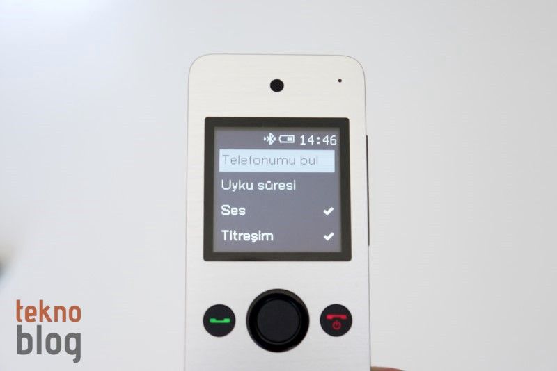 1.5 inç ekran üzerinden gezinti gerçekleştirilen basit kullanıcı arayüzünde Telefon, İletiler, Takvim, Bildirim, Uzaktan Kumanda ve Ayarlar olmak üzere altı ana başlık altında çeşitli uygulamalar görüyoruz.