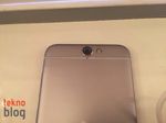 HTC One A9’un arka yüzünün tam ortasında şirketin logosu bulunuyor. 13 megapiksel kamera ve çift LED flaş ise arka panelin üst orta kısmına yerleştirilmiş. Demo için oluşturulan alanda HTC One A9’un kamera yeteneklerini tam anlamıyla deneyimlemek mümkün olmadı. Ancak optik görüntü sabitleyici ve RAW formatında fotoğraf çekim imkanı gibi özellikler dikkat çekiyor.
