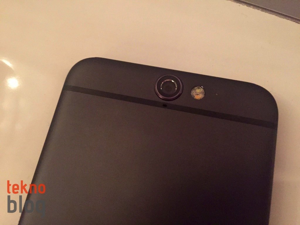 HTC One A9’un arka yüzünün tam ortasında şirketin logosu bulunuyor. 13 megapiksel kamera ve çift LED flaş ise arka panelin üst orta kısmına yerleştirilmiş. Demo için oluşturulan alanda HTC One A9’un kamera yeteneklerini tam anlamıyla deneyimlemek mümkün olmadı. Ancak optik görüntü sabitleyici ve RAW formatında fotoğraf çekim imkanı gibi özellikler dikkat çekiyor.
