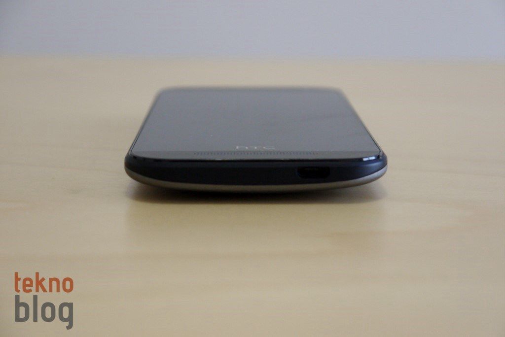 Sol kenarda nanoSIM kart tepsisi bulunurken ona karşı gelen tarafta da microSD kart tepsisini görüyoruz. Bu iki tepsi de kutunun içinden çıkan sivri uçlu cisim yardımıyla çıkarılıyor. Ses tuşları sağ kenarda, microSD kart tepsisinin altında bulunurken güç butonunu yine üstte, sola doğru yerleştirilmiş şekilde görüyoruz. 3.5 mm. kulaklık jakı da bu butonun hemen yanında bulunuyor. Alt kenarda microUSB portu yer alırken arkada da 13 megapiksel kamera, LED flaş ve mikrofonun yan yana yerleştirildiğini görüyoruz. HTC logosu da telefonun arkasında, ortalanmış şekilde görünüyor ve oldukça hoş duruyor.