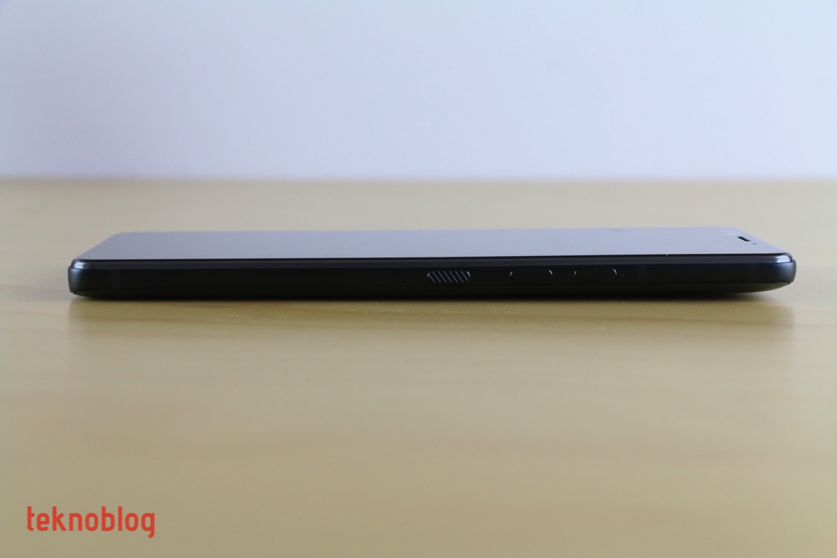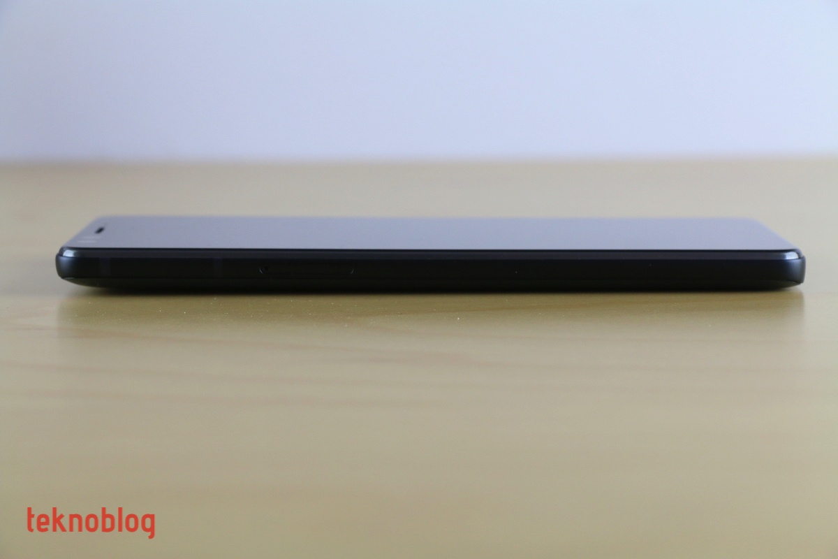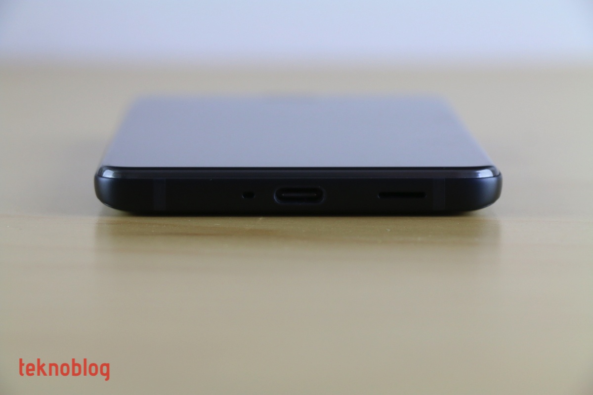 Kenarları saran siyah renkli alüminyum çerçeve mat ve sıradan bir görünüme sahip. Bu çerçeveyi belirli noktalarda anten çizgileri kesiyor. Alt kenarda USB-C portu, mikrofon ve hoparlör, üst kenarda ikinci mikrofon bulunuyor. Sol kenarda nano SIM ve microSD kart tepsisi yer alırken, sağ kenarda da yukarıdan aşağı doğru ses ve güç tuşları bulunuyor.