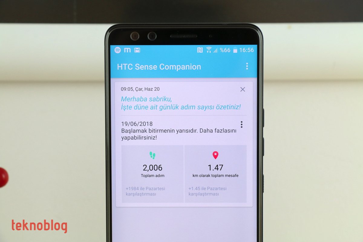 Örneğin, HTC Sense Companion adlı uygulama, sizin U12+’ı kullanım alışkanlıklarınıza göre bazı tavsiyelerde bulunuyor. Yakınlardaki mekanlara yönelik tavsiyeler alma, atılan adım sayısı veya yakılan kalori miktarını günlük olarak görmek gibi, kart biçiminde bilgiler çeşitli aralıklarla sunuluyor. Sense Companion bildirimlerini telefonun kenarından beliren bir ikon yardımıyla hızlıca görebilirsiniz. Sense Companion yararlı bir uygulama gibi görünse de, çoğu zaman kullanmadığımızı belirtmemiz gerekiyor.