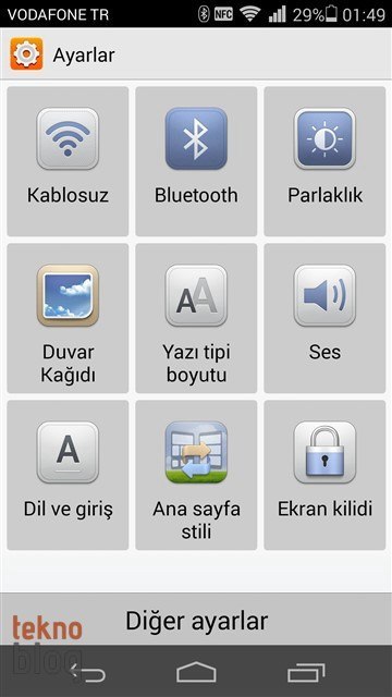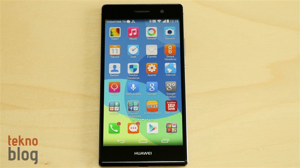 Ascend P7 Vodafone tarafından satıldığı için açılışta sizi bir Vodafone animasyonu karşılıyor. Ayrıca ekranın sağ üst köşesinde de operatör bilgisi olarak Vodafone sürekli karşımızda. EmotionUI’nin farklılıklarından bir tanesi de bu operatör bilgisi gösterimi olmalı. Normalde mobil operatörlerin tanıtım görsellerine sonradan ekledikleri, Android’in doğasında bulunmayan bir özelliği Huawei kullanıcı arayüzüne entegre etmiş, fena da olmamış. Bu arada Vodafone Self Servis uygulaması da Ascend P7’de yüklü olarak geliyor.