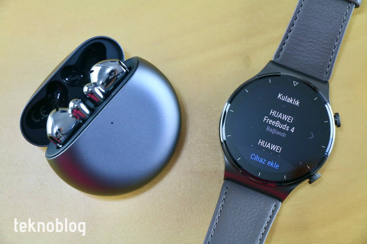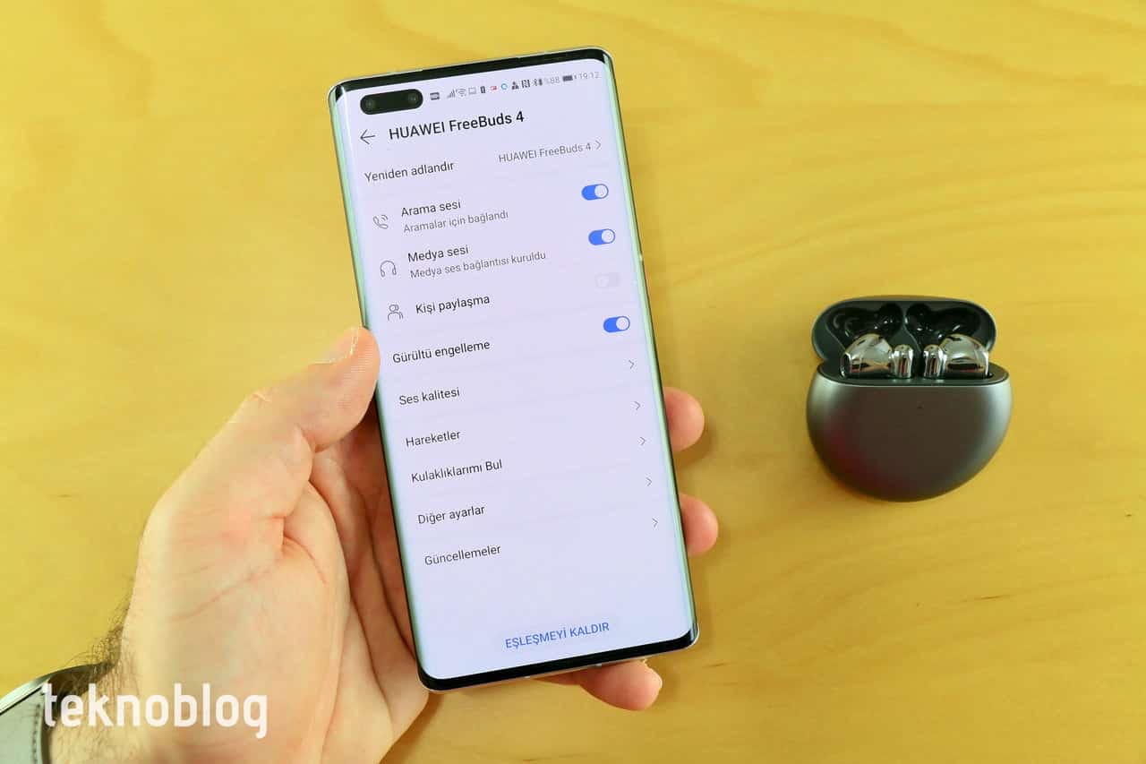 Herhangi bir cihazla eşleştirme işlemini başlatmak için kapağı açtıktan sonra kenardaki fiziksel düğmeye birkaç saniye basıp beklemek yeterli oluyor. Kapağın altındaki lamba beyaz renkte yanıp sönmeye başlıyor ve FreeBuds 4’ün eşleştirme moduna girdiği anlaşılıyor. Daha sonra bağlayacağınız cihazın Bluetooth ayarlarına gidip FreeBuds 4’ü bularak bağlantı işlemini tamamlayabilirsiniz.