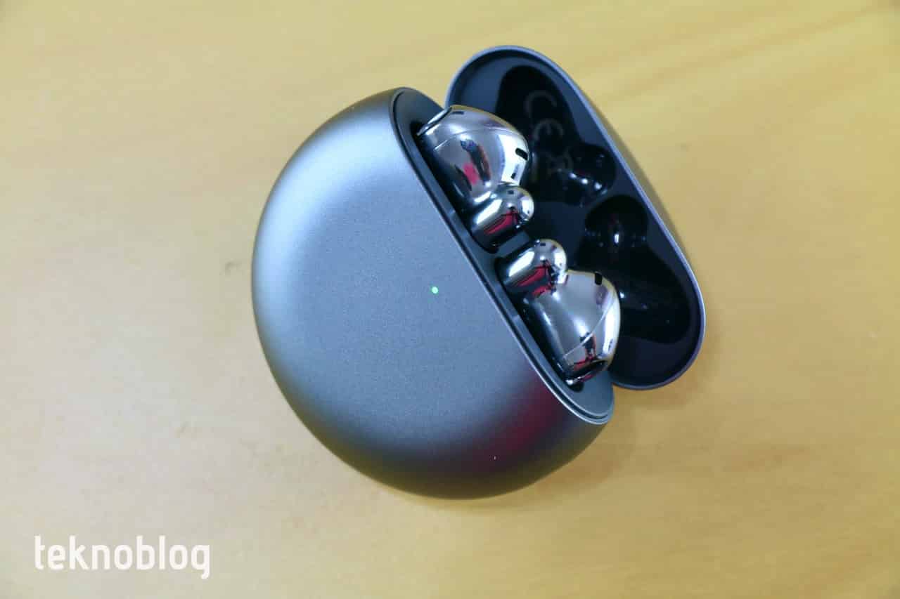 Şarj kutusuna gelecek olursak, tasarım açısından önceki model olan FreeBuds 3’ün kutusunun tasarımını andırıyor. Eni ve boyu birbiriyle hemen hemen aynı ve fazla kalın olmayan, şık görünümlü bir şarj kutusu karşımızda duruyor. Belirttiğimiz gibi, mat yüzeye sahip, gümüş renk de hoş duruyor. Aslına bakarsanız, tasarımı farklı olsa da, seçilen malzeme ve renkle FreeBuds Pro’nun şarj kutusuyla büyük benzerlikler taşıdığını söylememiz gerekiyor.