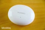 Kutunun kapağının hemen altında bir Huawei logosu görüyoruz. Onun altında ise şarj durumunu gösteren bir LED lamba var. Alt kenarda ise USB-C portu bulunuyor. Şarj işlemi buradan gerçekleştiriliyor. Ne yazık ki, şarj kutusu kablosuz şarj desteğine sahip değil.