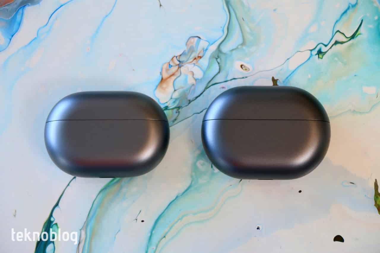 FreeBuds Pro 2’nin daha kısa bir gövdeye sahip olduğunu söylemiştik. Yüzde 9 oranında daha kısa ve yüzde 14 oranında daha ince olan bu gövdenin yanı sıra, şarj kutusu da daha hafif ve küçük. Aslına bakarsanız, tasarım açısından iki versiyonun şarj kutuları birbirinden farklı değil. Ancak yan yana getirdiğinizde, yüzde 11 oranında daha küçük olan FreeBuds Pro 2’nin şarj kutusunun farkı ortaya çıkıyor. Bu arada arkada yer alan Devialet logosu da iki kulaklığı birbirinden ayırmaya yardımcı oluyor. Sağ kenardaki eşleştirme düğmesi de biraz daha küçültülmüş. Buna rağmen, kullanmasında pek bir sıkıntı görünmüyor. Ağırlık konusunda da FreeBuds Pro 2 avantajlı. Sadece 5.9 gram ağırlığındaki kulaklık tekleri neredeyse yokmuş gibi bir his yaratıyor. Uzun kullanımlarda da sıkıntı yaratmıyor, kulaklıkları çıkarma ihtiyacı hissetmiyorsunuz. Şarj kutusu ise, kulaklıklar içinde yokken 52.1 gram ağırlığa sahip. Küçülen boyutları ve hafifliğiyle şarj kutusunu cepte rahatça taşıyabilir, çoğu durumda varlığını unutabilirsiniz.