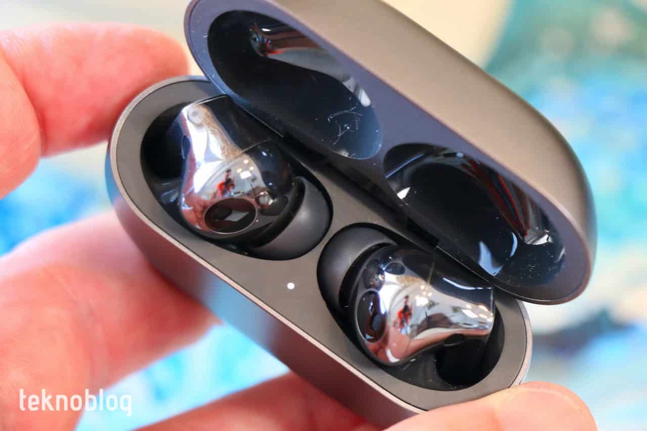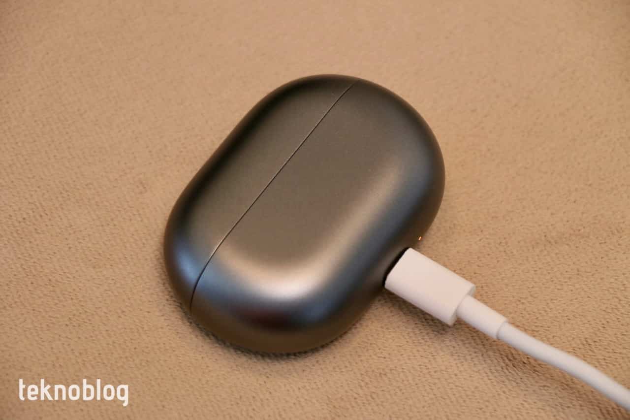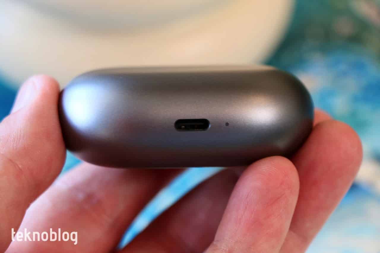 Şarj kutusu üzerinde iki adet gösterge lambası var. Bunlardan biri kutunun alt tarafında, USB-C portunun yanında, şarj kutusunun pil ve şarj durumunu gösteriyor. Şarj başladığında turuncu ve pil tamamen dolduğunda yeşil renkte yanıyor. Kapağın içindeki ikinci lamba ise kulaklıkların pil durumunu gösteriyor. Ya da eşleştirme seviyesini veya fabrika ayarlarına sıfırlama durumunu görüyorsunuz. Başka bir cihazla eşleştirmek istediğinizde kenardaki eşleştirme düğmesine birkaç saniye basmanız yeterli. Aynı tuşa 10 saniyenin üzerinde bastığınızda ise kulaklık fabrika ayarlarına geri dönüyor.