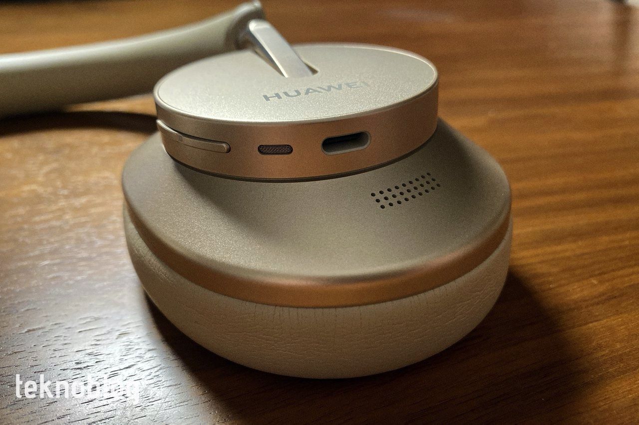 FreeBuds Studio’nun sağ ve sol kulaklık tekleri, içlerine yerleştirilmiş R ve L harfleriyle gösteriliyor. Her iki kulaklığın üzerinde de çeşitli kontroller var. Sağ kulaklıkta güç ve Bluetooth düğmeleri, sol kulaklıkta ise aktif gürültü engelleme / farkındalık düğmesi mevcut. Öte yandan sağ kulaklığın dış yüzeyi de çeşitli dokunmatik kontrolleri yerine getirmeyi sağlıyor. Yukarı / aşağı kaydırmayla ses ayarı, sola / sağa kaydırma ile çalan parça değişimi, çift tıklatma ile de gelen çağrıyı cevaplama veya çalan parçayı duraklatma ve devam etme işlevleri yerine getiriliyor. Bu arada giyme algılama özelliği sayesinde kulaklığı kafanızdan çıkardığınızda çalan içerik duruyor.