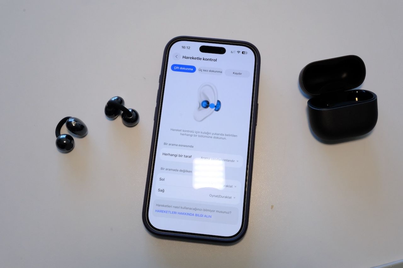Teknik özellik tarafında da tasarımı destekleyen epey detay var. Kulaklıklar IP57 sertifikası ile suya ve toza karşı oldukça yüksek bir dayanım sunarken, şarj kutusu IP54 ile sıçramalara karşı korunuyor. Bu sayede yağmurda yürürken, koşu bandında terlerken veya sahilde rüzgârla beraber tuzlu nemle karşılaşırken kulaklıkları çıkarma zorunluluğu hissetmiyorsunuz. Üstüne bir de otomatik sağ-sol kanal tanıma, baş hareketiyle çağrı yanıtlama/sonlandırma, kulaklık üzerinden direkt ses seviyesi ayarı ve dokunma/kaydırma hareketleri eklenince, tasarım sadece güzel görünmekten ibaret kalmıyor, ciddi anlamda işlevsel bir bütün oluşturuyor.