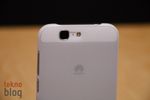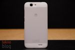 Ascend G7’nin arka kapağı yerinden çıkarılmıyor. Zaten bu yüzden kart yuvaları da gövdenin kenarında bulunuyor. Arka yüzde de metal, kenarların bir uzantısı olacak şekilde büyük bir yer kaplıyor. Üstte 13 megapiksel kamera, LED flaş ve ikinci mikrofonun, altta da hoparlörün bulunduğu bölgelerde de plastikten yapılmış beyaz renkli şeritler mevcut. Bu tasarım telefonu biraz daha çekici kılıyor.