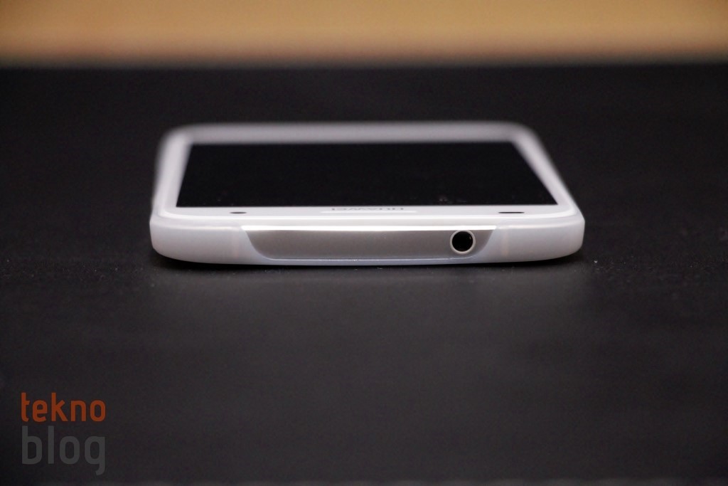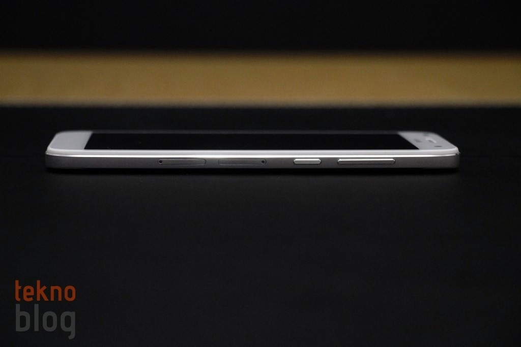 G7’nin sol kenarı temiz bırakılmış, bütün tuşlar ve yuvalar sağ kenara yerleştirilmiş. Sağ kenarda yukarıdan aşağı doğru ses ve güç tuşlarını, microSD ve microSIM kart yuva tepsilerini görüyoruz. Kart tepsileri G7’nin kutusuna iliştirilen bir iğne yardımıyla yerlerinden çıkarılıyor. Alt kenarda microUSB portu ve mikrofon yer alırken, üst kenarda da 3.5 mm. kulaklık jakının bulunduğunu görüyoruz.