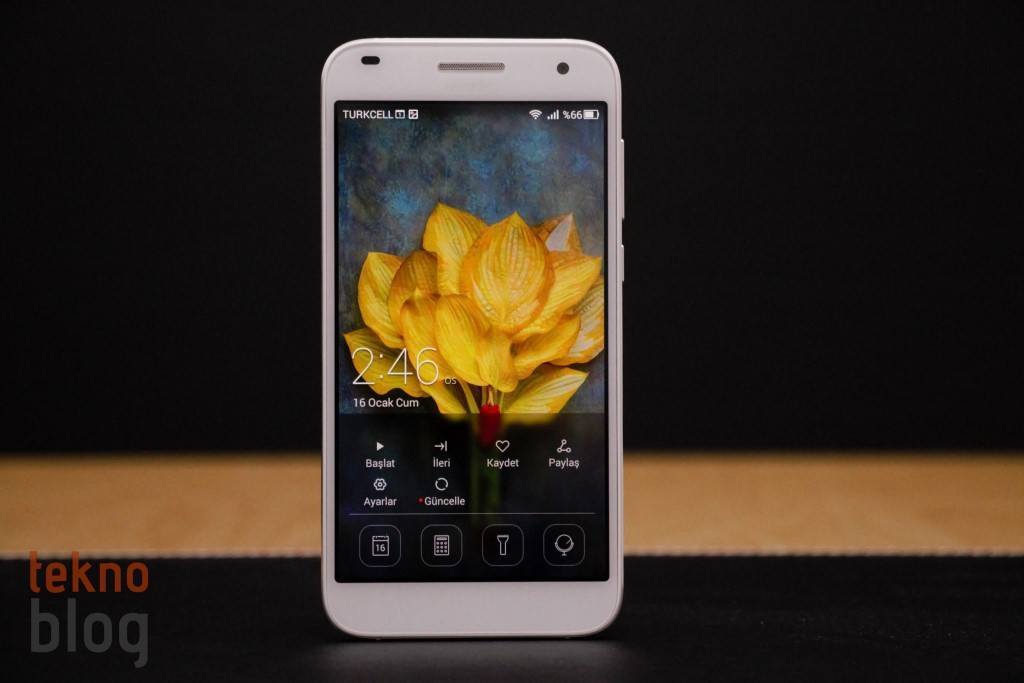 Huawei G7’nin kilit ekranındayken parmağınızı ekranın alt kısmından, saat ve tarih bileşeninin bulunduğu bölümden yukarı sürüklediğinizde karşınıza çıkacak hızlı erişim paneli içinde iPhone ve iPad’deki Denetim Merkezi’ne benzer şekilde çeşitli kısayollar bulunuyor. Takvim, Hesap Makinesi, El Feneri ve Ayna uygulamasına bu panel üzerinden hızlıca erişebilirsiniz. Öte yandan G7’nin kilit ekranındaki duvar kağıtları özel olarak seçildi, G7’nin ekranında da oldukça güzel görünüyor. Sözünü ettiğimiz panel üzerinden bu fotoğrafların slayt gösterisi şeklinde akmasını sağlayabilir, istediğiniz fotoğrafı kolaylıkla erişebileceğiniz şekilde G7’nin dahili hafızasına kaydedebilirsiniz.