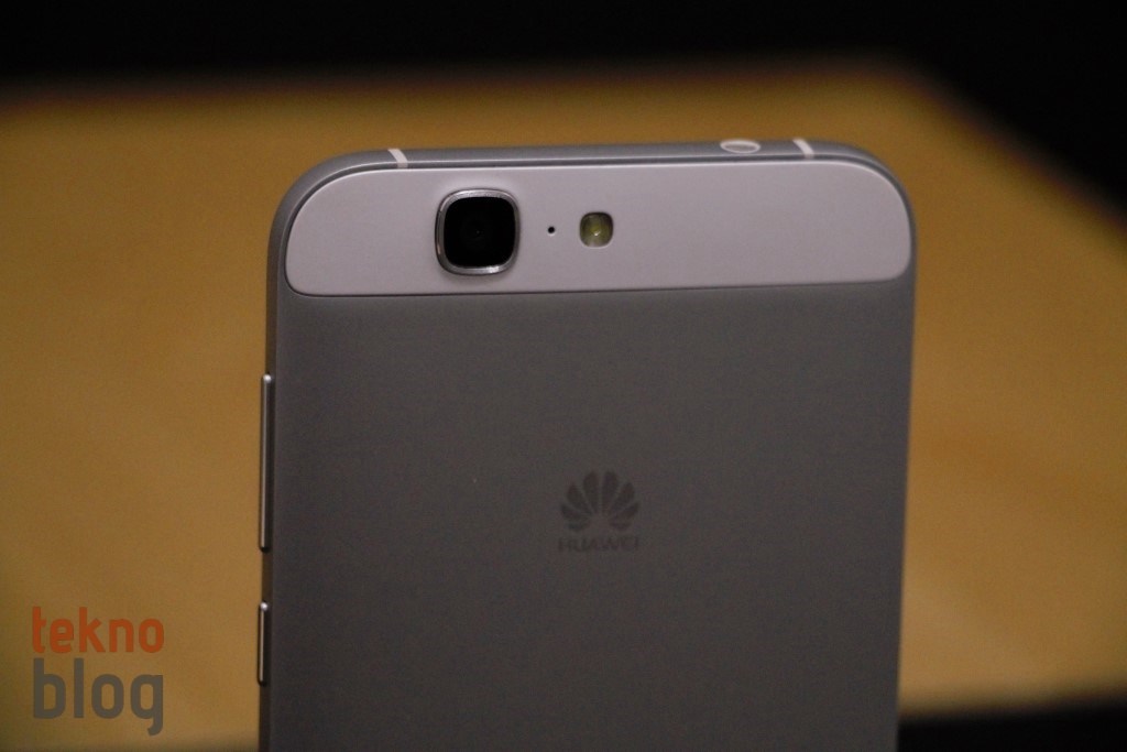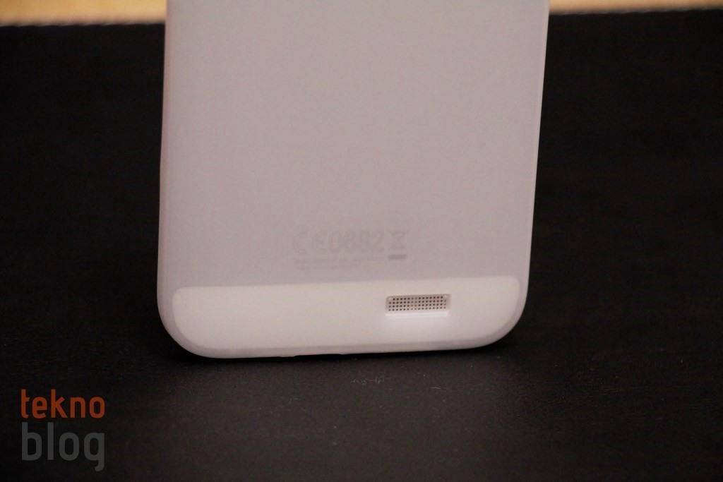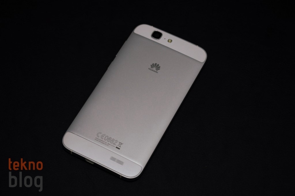 Ascend G7’nin arka kapağı yerinden çıkarılmıyor. Zaten bu yüzden kart yuvaları da gövdenin kenarında bulunuyor. Arka yüzde de metal, kenarların bir uzantısı olacak şekilde büyük bir yer kaplıyor. Üstte 13 megapiksel kamera, LED flaş ve ikinci mikrofonun, altta da hoparlörün bulunduğu bölgelerde de plastikten yapılmış beyaz renkli şeritler mevcut. Bu tasarım telefonu biraz daha çekici kılıyor.