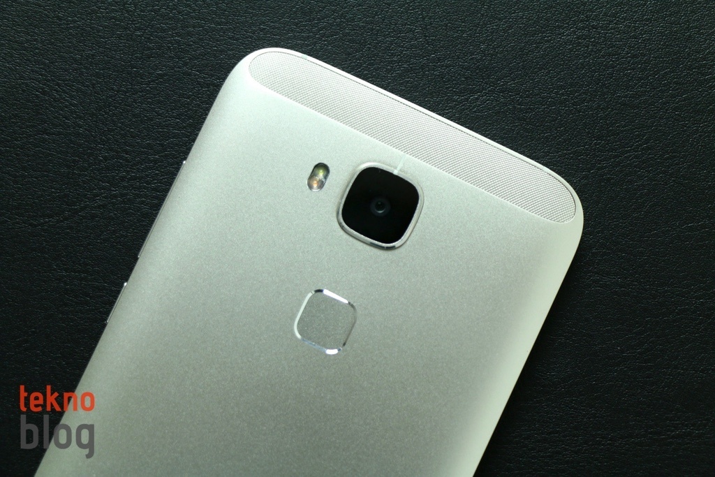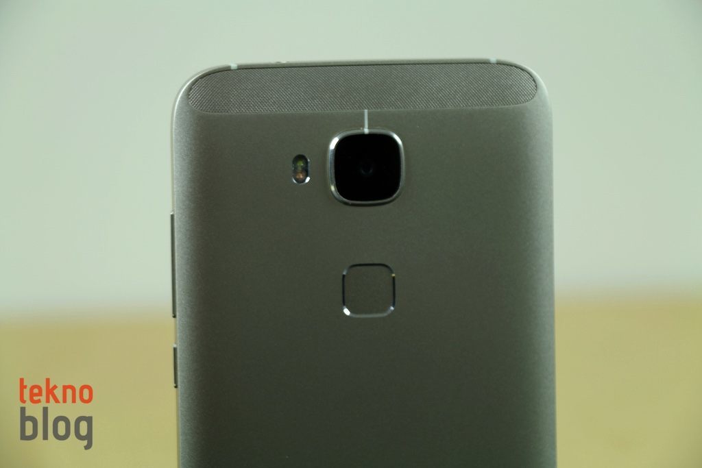 Kameranın hemen altında parmak izi okuyucusunu görüyoruz. Apple, Samsung gibi şirketlerin önde, ekranın hemen altında yer alan fiziksel ana ekran tuşuna parmak izi okuyucusunu yerleştirdiğini görüyoruz. Sony ise Xperia Z5’te kenarda yer alan güç butonuna parmak izi tarayıcısını eklemişti. Huawei ise G8’de arka tarafa parmak izi okuyucusunu yerleştirmeyi tercih etmiş. Telefonu her iki elde de tuttuğunuzda, işaret parmakları bu okuyucunun bulunduğun bölüme denk geliyor, dolayısıyla telefonu elde kavradığınızda parmak izi okuyucusunu rahatlıkla kullanabiliyorsunuz. Ne var ki, telefon bir yüzey üzerinde duruyorsa, arkadaki parmak izi okuyucusuna telefonu ele almadan veya çevirmeden ulaşmak zor. Yani arkadaki parmak izi okuyucusu bu açıdan Apple ve Samsung’un çözümlerinin gerisinde kalıyor. Her ne olursa olsun, G8’in parmak izi okuyucusu epey iyi çalışıyor, parmak izi taramasını hızlıca yapıyor ve ekran kilidini hemen atlayıp kullanıcı arayüzüne erişlmeyi sağlıyor.